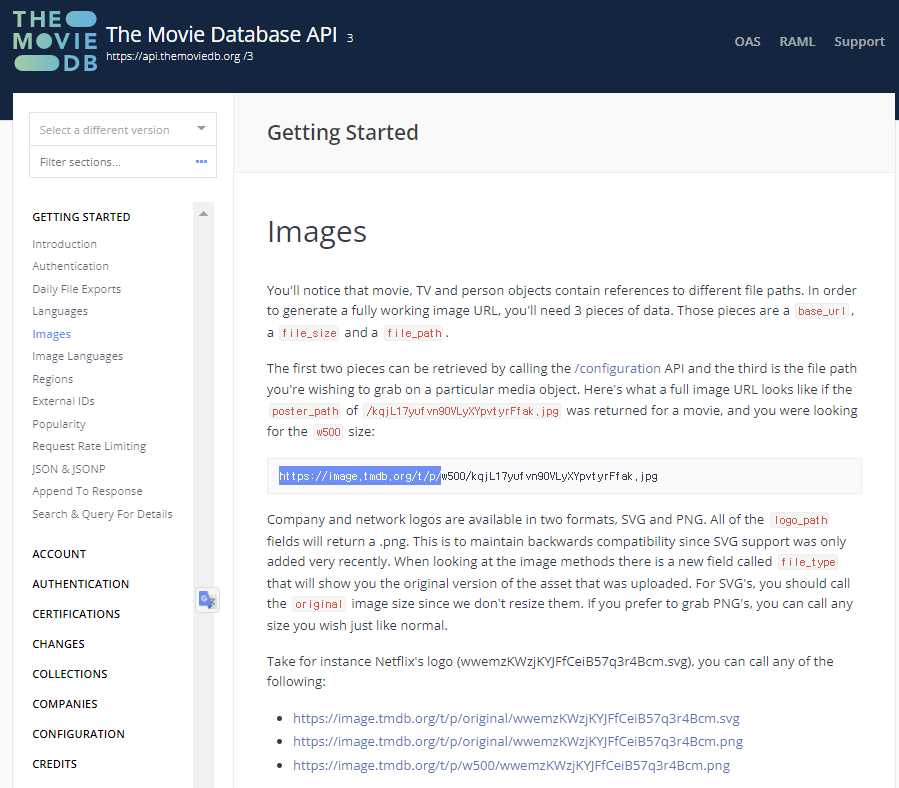 * The Moive DB API 관련 설명 - 영어(사이트 : https://developers.themoviedb.org/3/getting-started/images)