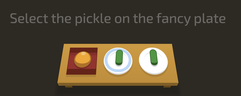 5) 문제 : Select the pickle on the fancy plate