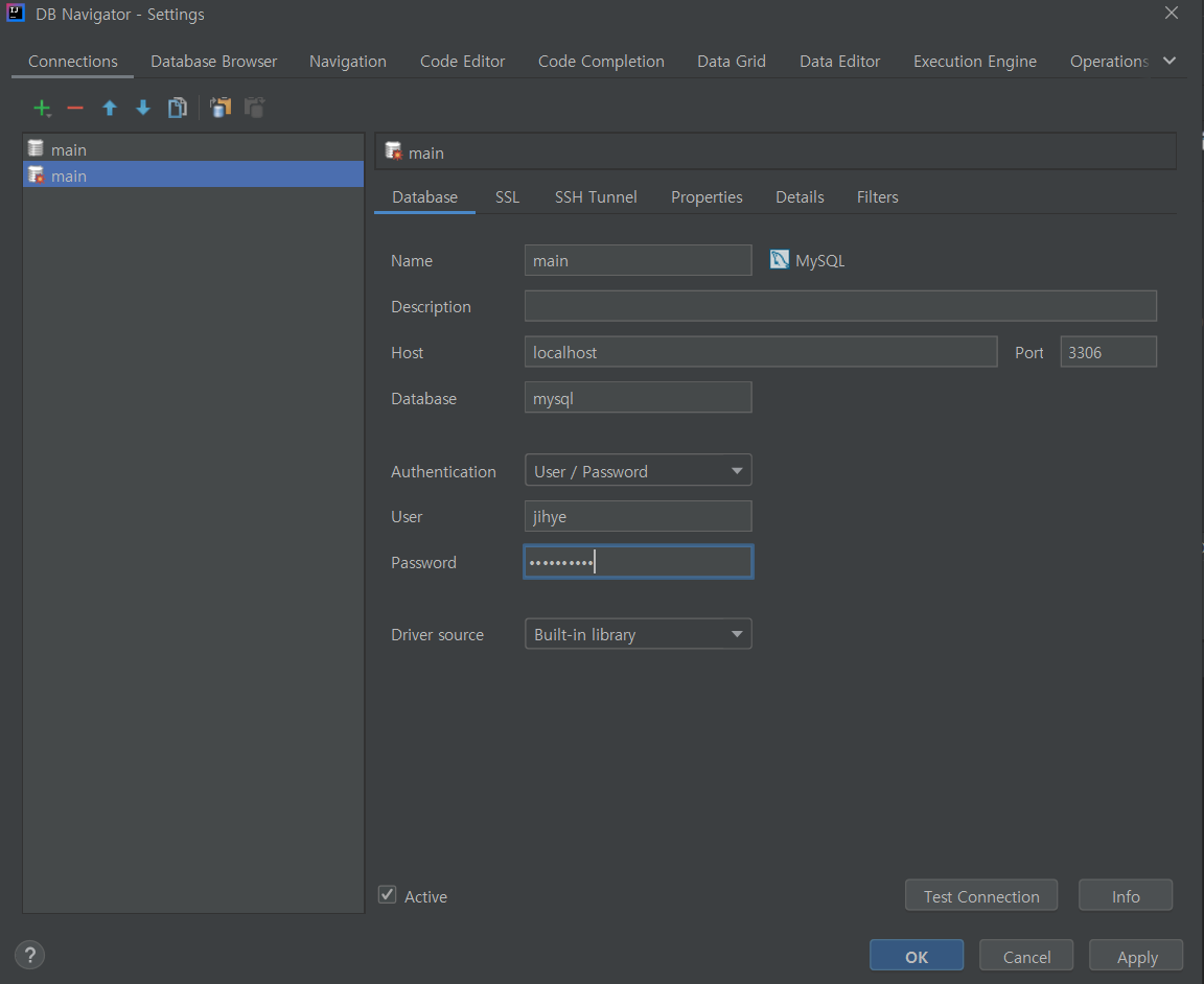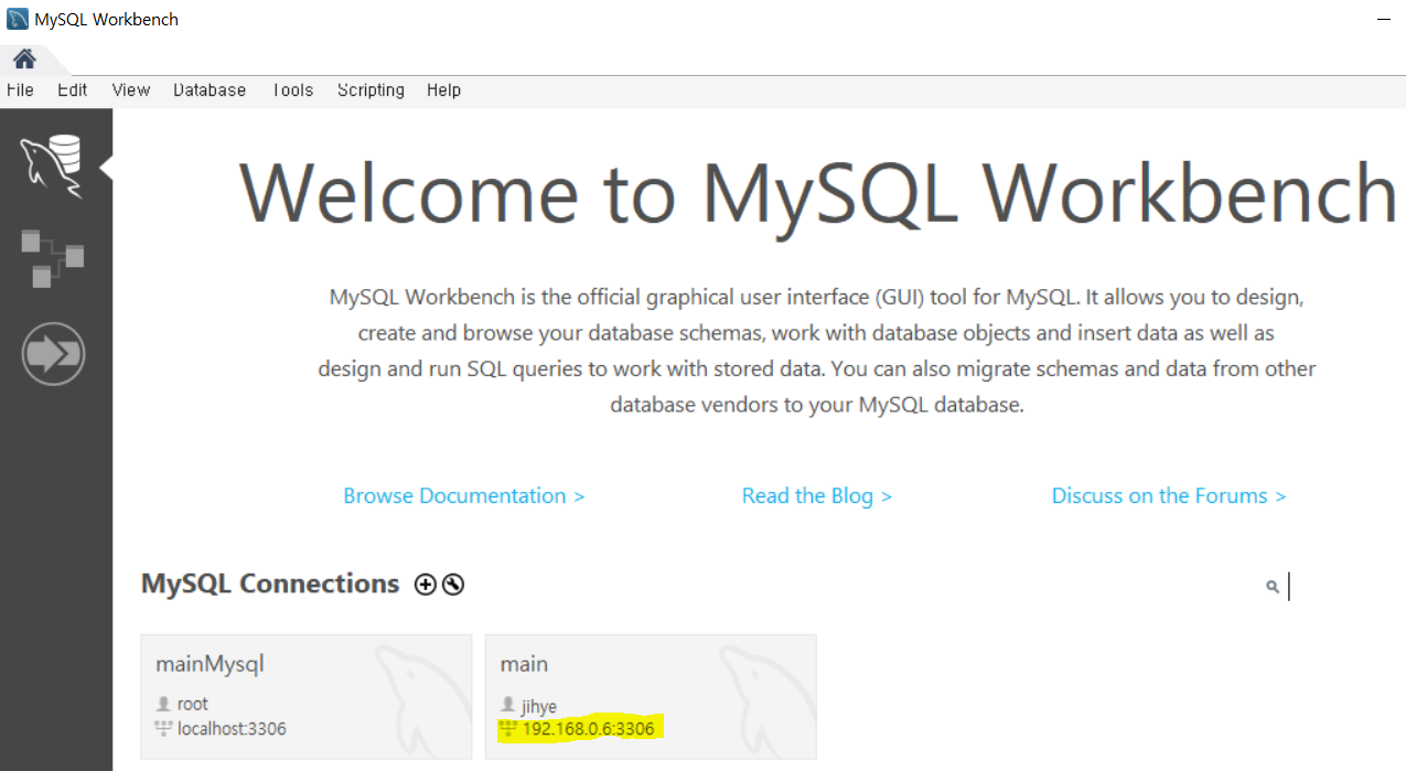 3. DB Browser 연결(MySQL) -> main(Database Name = main)으로 동일하게 해야 함