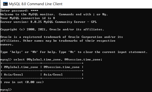 출처 : [MySQL] mysql server timezone 한국으로 설정하기. (tistory.com)