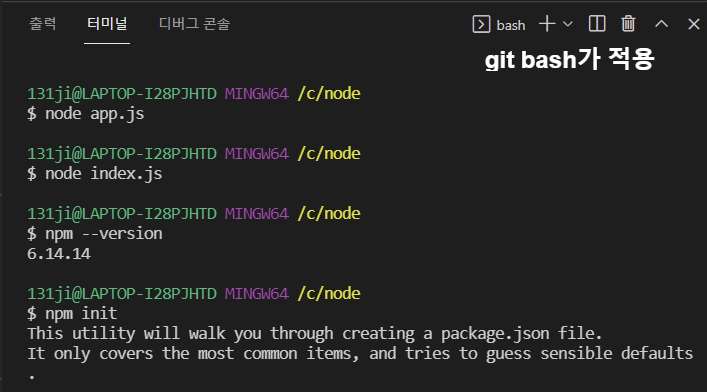 * node.js를 bash에서 node.js의 npm init 설치 필요
